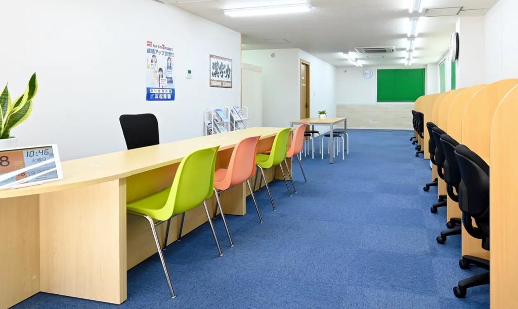 塾内の環境 塾の中は、仕切りで分かれており、皆さん静かに勉強に集中しており、とても勉強しやすい環境に見える。