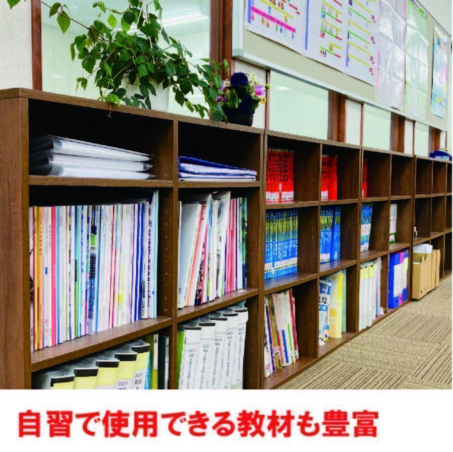 志望校別の過去問や学校の副教材など自習で自由に使える教材も豊富。