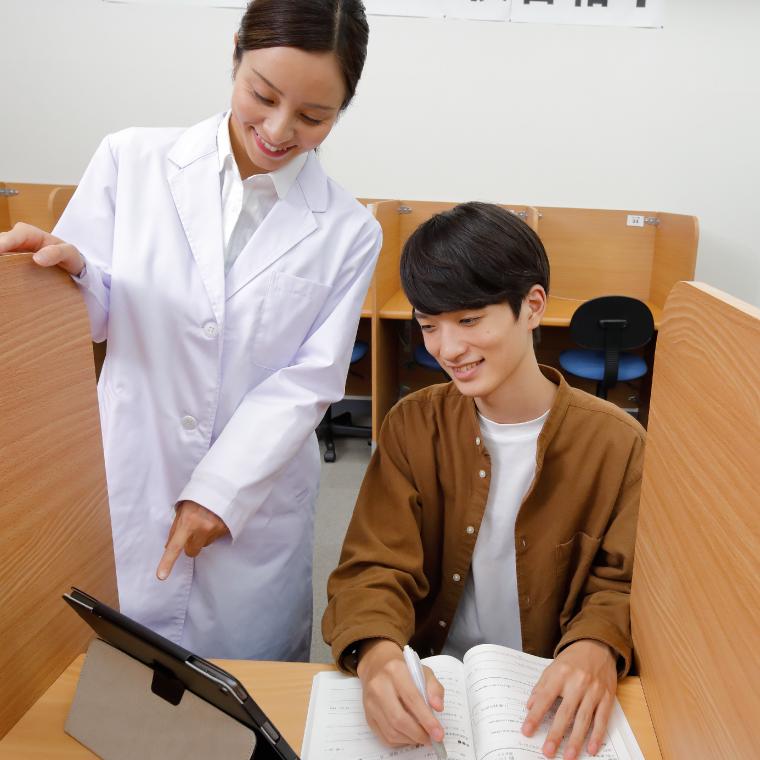 圧倒的にわかりやすい秀英予備校450名の教師から選ばれた教師、一人ひとりの学習進度と理解度を徹底的に確認し、適切なアドバイスをする教室長、授業中にわからない問題をどう考えるか、自分でどう解決するかを指導してくれるチューター、3人の先生が生徒一人ひとりをサポートします。