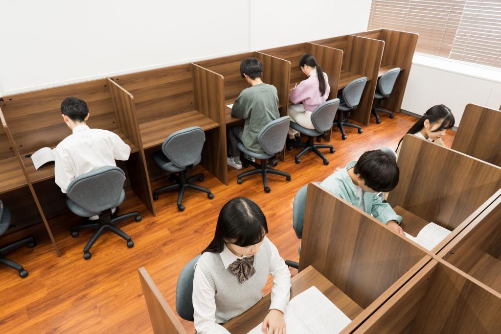 - はい、ございます。塾生であれば、授業の有無にかかわらず、空いた時間にご利用いただけます(閉室時を除きます)。高校生しかいない落ち着いた空間になっており、ブースは個別に仕切られていますので、集中して学習に取り組むことができます。また、先生に質問ができるので、その場で問題を解決することができます。※感染予防対策で密集度をコントロールするため、利用人数の制限や閉鎖を行う場合がございます。各教室にてご確認ください。
